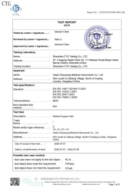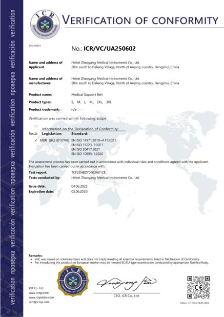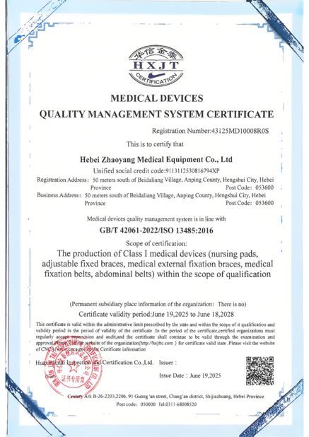 Hebei Zhaoyang Medical Instrument Co., Ltd. گواهینامه